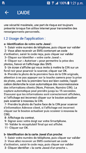 Cette application a pour objectif l’enregistrement électronique des dossiers de souscription au service Jawal de Maroc Telecom. Elle est utilisable sur un smartphone ou tablette, elle permet de :