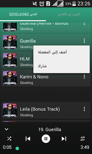 مشاركة الأغاني اختيار الأغاني ووضعها في قائمة المفضلة...