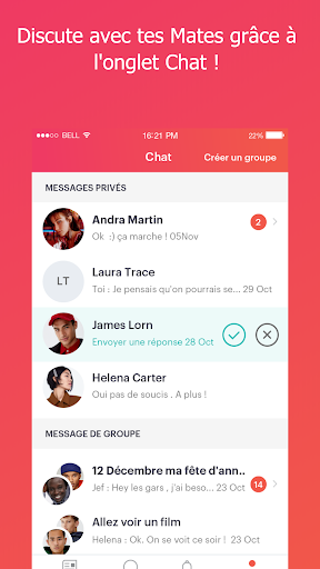 Avec Mate Social Dating, tu sors du monde virtuel et tu profites de rencontres réelles.