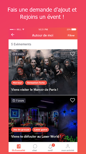 * Chat intégré : Pas besoin de sortir de l’appli pour organiser l’expérience. En effet, grâce au