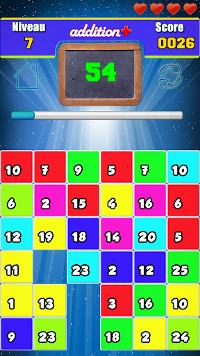 C'est un très bon entraînement pour les mathématiques, grâce à ce jeu gratuit, vous pourrez calculer à la vitesse d'une calculatrice, aucune opération ne saura vos arrêter, le calcul mental (l'addition) n'aura plus de secret pour vous !