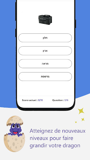 Vous voulez apprendre l’hébreux ? Notre application peut vous aider ! Même si vous n’avez jamais étudié l’hébreux avant. Bénéficiez de leçons faciles à exploiter pour les débutants, ainsi que d’un design totalement intuitif qui vous aidera à apprendre en vous amusant de manière captivante. Apprendre l’hébreux est plus facile grâce à des fonctionnalités comme des « flashcards », votre dragon qui grandira au fur et à mesure que vous atteindrez des niveaux plus élevés, le fait d’écouter des personnes de langue maternelle hébreuse, et bien plus encore.