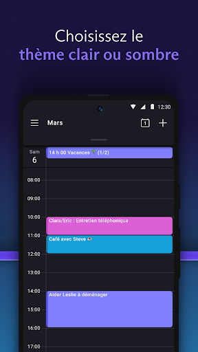 ✓ Choisissez d'afficher vos événements avec le thème sombre ou le thème clair