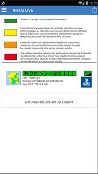 - Recevez une notification sonore en cas d'événement important: Alerte orange, Alerte rouge, Alerte inondation, Alerte canicule et tous autres événements exceptionnels, Episode Cévenol, Episode Méditerranéen, où que vous êtes, vous serez au courant.