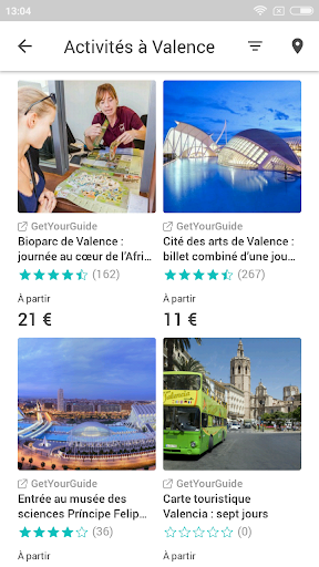 ➢ Dans « Activités », vous trouverez les meilleures visites organisées et excursions à Valence.