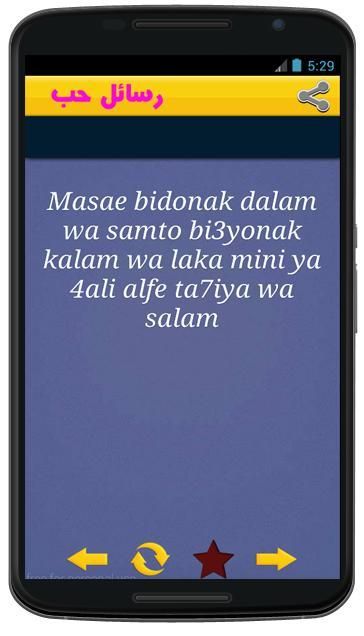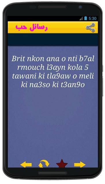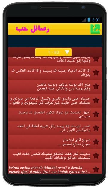من مميزات هذا التطبيق رسائل حب ورومانسية مغربية sms love darija هو تصميمه الفريد والبسيط الذي يساعد طك على العثور على sms darija maroc رسائل حب بالدارجة المغربية rasail hob maroc بسهولة كبيرةوارسالها في الحال إلى الشخص الذي تحبه.