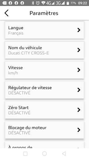 Rendez votre véhicule intelligent grâce à Ducati Urban e-Mobility ! Accédez à votre garage virtuel où sont garés tous vos véhicules Ducati Urban e-Mobility et contrôlez leurs fonctions de vitesse et de performance grâce au tableau de bord numérique. Partagez votre itinéraire et restez en contact avec la communauté !