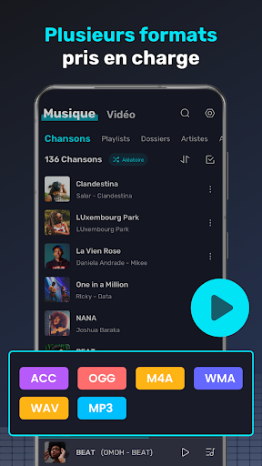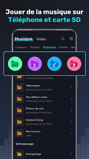 ⭐Scannez les fichiers musicaux localement et gérez la musique par dossiers, artistes, albums, genres et listes de lecture.