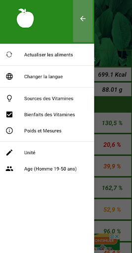 • La plus grande base de données alimentaire incluse dans un compteur de vitamines et minéraux pour Android : plus de 1000 d'aliments.
