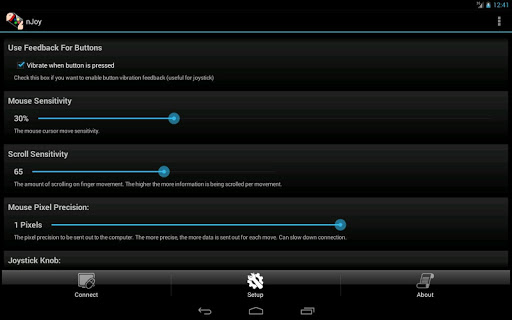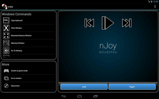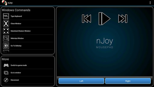 nJoy includes a gaming joystick layout and a comprehensive desktop control