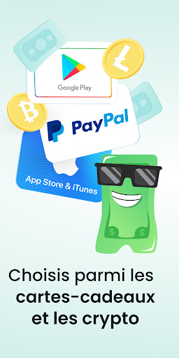 Après avoir gagné ton solde, échange tes pièces contre de l'argent PayPal gratuit, des cartes cadeaux gratuites ou des cryptos comme Bitcoin, Ethereum, XRP, etc.