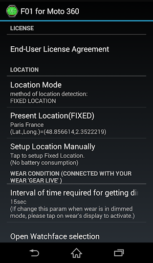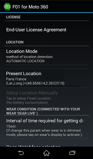 - Définissez automatiquement votre emplacement à l'aide du fournisseur d'emplacement. (Consommation de batterie faible) - Vous pouvez définir votre position manuellement. (Pas de consommation de batterie)