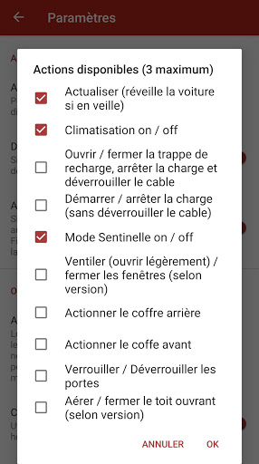 Elle vous permet aussi de lancer des actions comme le préchauffage de votre voiture, déverrouiller le cable de rechargement, activer le mode Sentinelle, etc. en un seul clic ! De plus les actions sont personnalisables et vous pouvez choisir vos raccourcis ! Vous pouvez même créer des raccourcis pour ces actions et les placer sur votre écran principal !