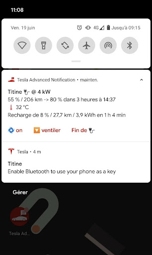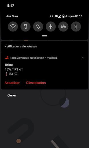 Elle vous apporte une notification persistante avec le status de la voiture, le dernier niveau de batterie ou l'état de la charge, sans avoir à réveiller la voiture !