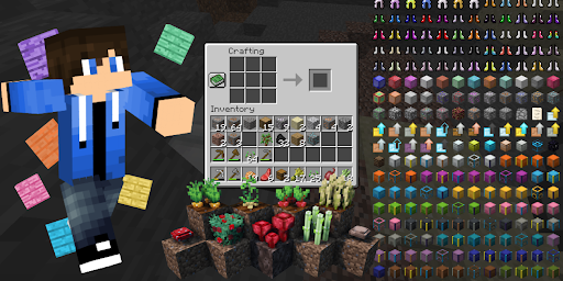 Les autres addons sont également disponibles pour vous: Packs de texture, cartes et skins. Vous pouvez développer vos territoires et ajouter une variété d'emplacements thématiques à l'aide de cartes! Skins transformera votre personnage! Essayez-vous dans une ampoule inhabituelle, par exemple, le héros de votre film préféré, dessin animé ou même anime!