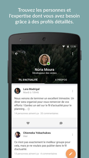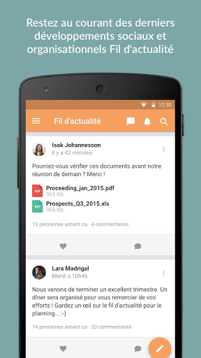 Partagez de nouvelles connaissances, des idées et des réalisations internes de manière facile et avec le reste de votre équipe, département ou organisation. Enrichissez vos messages avec des photos, vidéos et émoticônes. Gardez l’aperçu des nouveaux messages de vos collègues, de l’ organisation et vos partenaires externes.