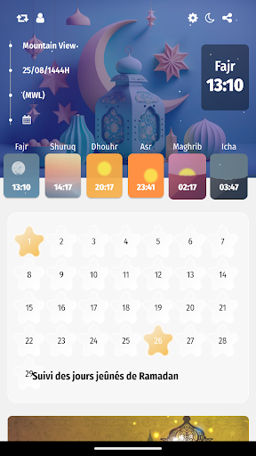 Fêtes musulmanes, cette application vous enverra une notification pour vous informer des occasions et fêtes musulmanes, et des informations à leurs sujet.