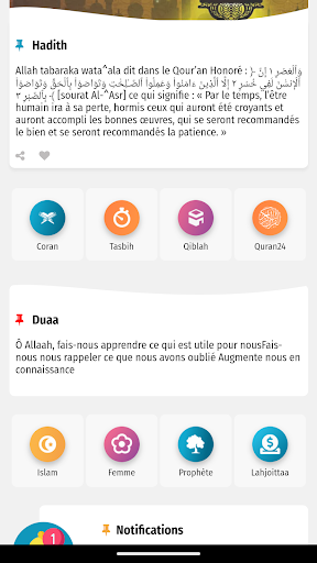 L'appel à la prière, vous serez notifié par l'application pour chaque heure de prière à temps.