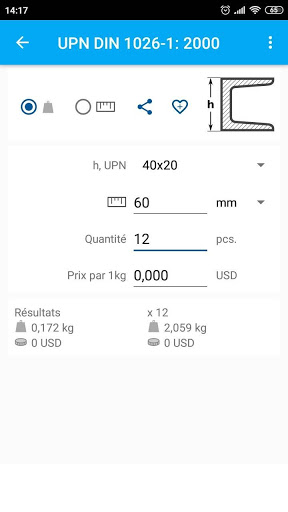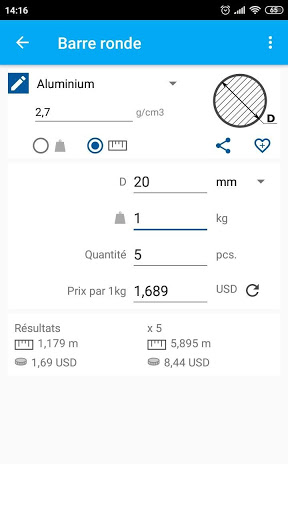 Calculer le poids / la longueur des tiges, des tuyaux et des profils en fonction des dimensions données par