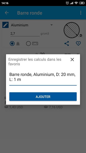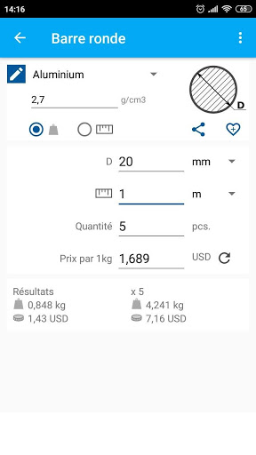 Vous pouvez effectuer des calculs en utilisant votre matériau choisi (par exemple argent, aluminium) et le vôtre