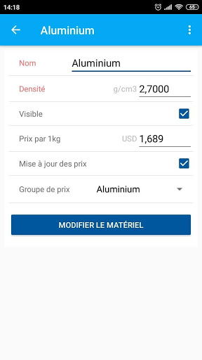 L'application calcule le prix de l'article (par exemple tuyau) en fonction des prix des matériaux