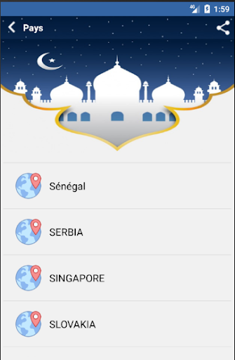 Adhan Muslim Les horaires de prière pour tous les pays du monde.