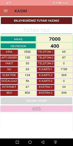 Avec la demande conçue comme 12 mois de l'année, vous pouvez la stocker et enregistrer vos dépenses tous les mois.Les nombreux éléments de revenu et de dépenses sont ajoutés et peuvent répondre et utiliser vos besoins est une application simple.Il est possible d'enregistrer tous les enregistrements en un seul clic.Grâce à l'application, vous pourrez définir votre budget plus confortablement et contrôler vos économies.Vous vous débarrasserez d'un problème lorsque vous oubliez vos dettes ou factures impayées.