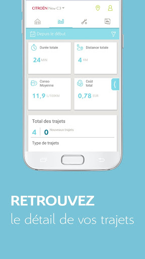 • Retrouvez et catégorisez vos trajets et consommations moyennes en connectant votre voiture ;