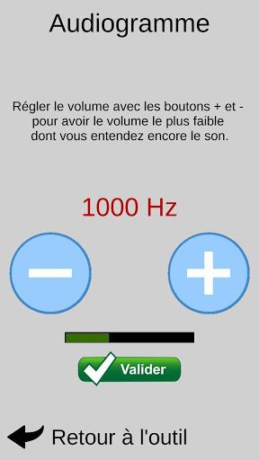 L'appareil propose de réaliser un audiogramme simplifié afin de tenir compte de la faiblesse auditive de l'utilisateur.