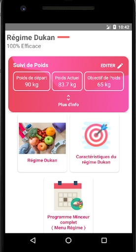 l'application est adaptée aussi bien aux régimes de perte de poids . Vous contrôlez quotidiennement ce qu'il vous reste à perdre pour atteindre votre objectif.