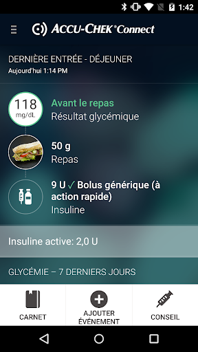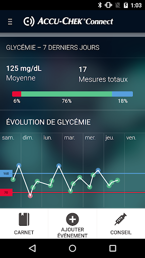 L’application Accu-Chek Connect est conçue pour aider au traitement du diabète. L’application Accu-Chek Connect permet le téléchargement des données de lecteurs, la saisie, le stockage, l’affichage et le transfert des données, ainsi que l’autogestion de la glycémie ; il accepte aussi d’autres indicateurs de santé qu’il peut afficher sous forme de rapport ou de graphique.