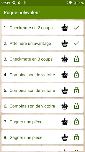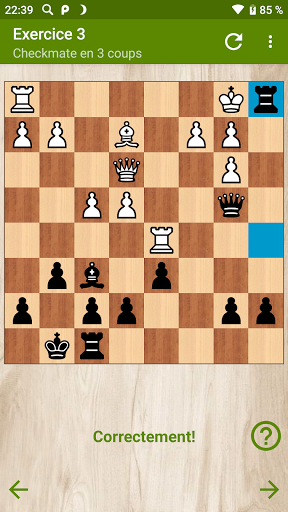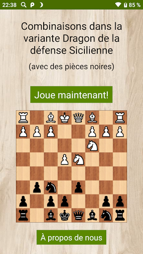 La version gratuite contient 27 exercices intéressants sur les combinaisons de victoire, gagner un avantage, gagner des pièces et s'accoupler en quelques mouvements. Dans la version complète de l'application, 172 tâches vous attendent.