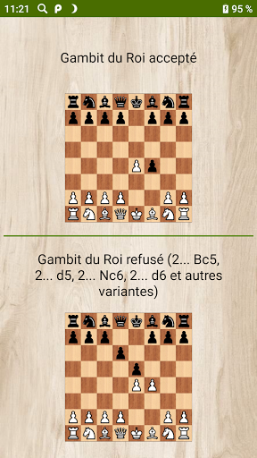 L'application traite du Gambit du Roi accepté et refusé.