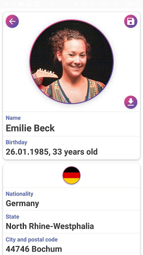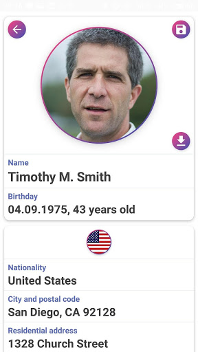 - génération de prénom et nom de famille (correspond à la nationalité choisie );