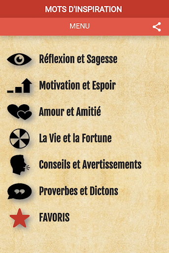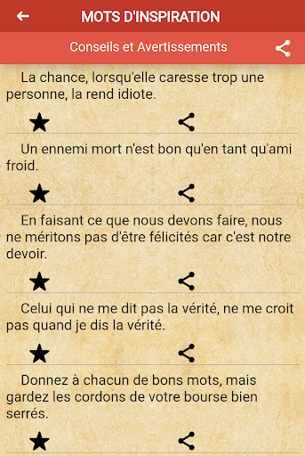 - Partagez ces sages paroles à tout moment, avec d'autres applications et avec les personnes que vous voulez motiver.