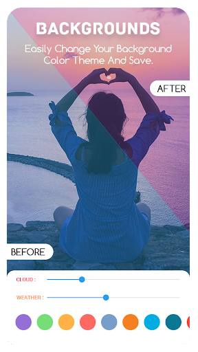 Filtre Sky. Editeur de l'arrière-plan: Sky Photo Editor a une option de gomme en arrière-plan que vous pouvez utiliser pour effacer les antécédents non désirés de vos photos existantes et nouvelles. Il existe deux types d'effondres disponibles dans cette application.
