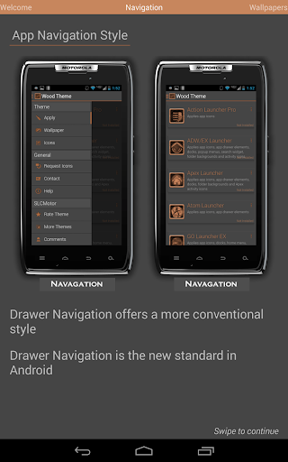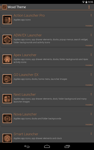 Ce thème va "ouvrir".Il a de nombreuses fonctions pour contrôler la manière dont le thème est appliqué et permet à l'utilisateur de fournir des commentaires, de s'appliquer à votre lanceur préféré, de rechercher dans les catégories d'icônes, envoyez une demande et bien plus encore.Vous aurez toujours besoin d'un lanceur installé pour utiliser tous les aspects du thème.