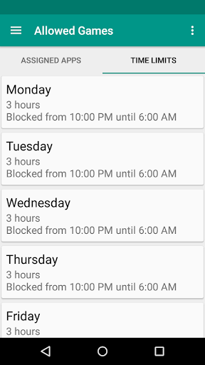 By grouping Apps into different categories, you can set different time limits, e.g. for games and communication Apps (SMS, Phone, Contacts).