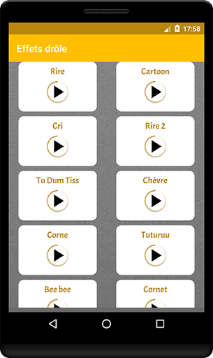 Il y a des centaines de sons d'effets à l'aide de votre téléphone cellulaire librement. Gardez à jour, parce que de nouveaux sons sont toujours insérés. Animaux sonores; Sirens sonores; Jeux et films sonores; son Farts; Et beaucoup d'autres ...