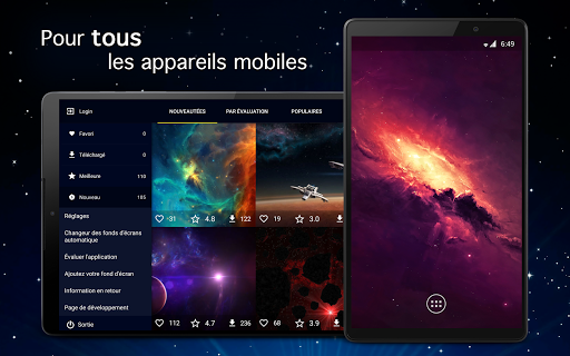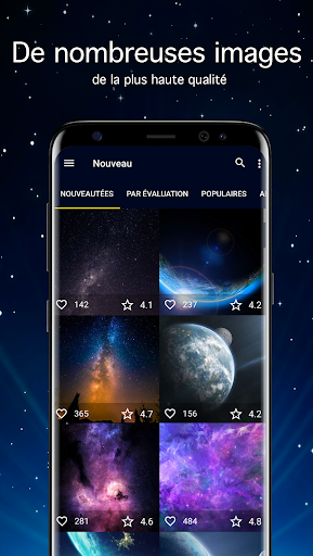L'application fera découvrir au monde d'excellents fonds d'écran 4K avec de l'espace pour Android sur téléphone ou tablette. Les fonds d'écran passent des vérification manuelle et des sélection avant d'arriver au catalogue, cela garantit d'avoir des fonds d'écran de haute qualité. De nouveau photos gratuits pour Android sont ajouté 24/24 7/7 365/365.