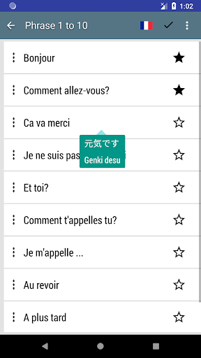 Learn Japanese est enregistré en utilisant un locuteur natif et nous avons fait de notre mieux pour être authentiques dans la prononciation tout en nous assurant que la prononciation est facile. Application recommandée pour les touristes et les hommes d'affaires en visite au Japon.