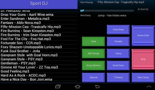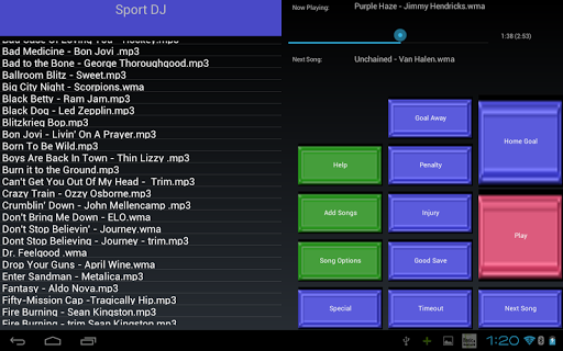 L'application dispose de 10 boutons playlist différents pour divers événements au cours du jeu comme par un but de l'équipe de la maison, une bonne Enregistrer, une peine de visiteur ou d'un objectif, ou après qu'un joueur se lève d'une blessure. Vous pouvez personnaliser les noms des boutons pour tous les événements que vous voulez ou de travailler pour n'importe quel autre sport.