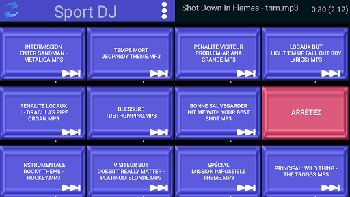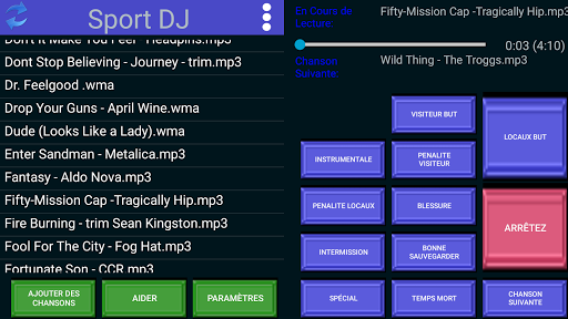 Sport DJ est une application spécialement conçue pour jouer de la musique lors d'événements sportifs. Il vous permet de jouer exactement de la bonne chanson au bon moment. Bien qu'il ait été conçu pour le hockey et la crosse, il est idéal pour le football et le base-ball américain et peut être utilisé pour n'importe quel événement où la musique se joue entre ou pendant la lecture.