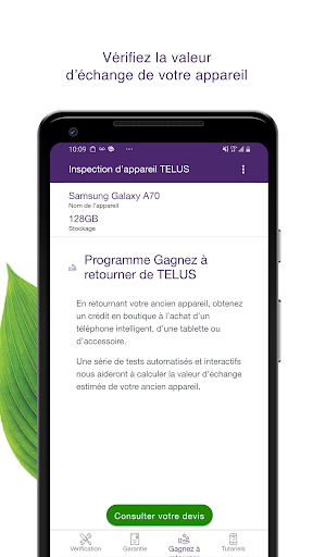 •Obtenez une estimation de la valeur de retour de votre appareil et utilisez-la comme crédit pour l’achat d’un nouvel appareil ou accessoire chez TELUS.