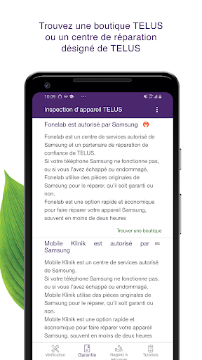 • Repérage des boutiques TELUS et des partenaires de réparation privilégiés de TELUS