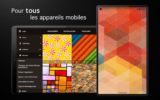 Le système intelligent de recherche, vous aidera à choisir les fonds d'écran texturé HD que vous voulez installer. La technologie de recherche innovante de palette de couleurs facilite la recherche d'image et la couleur désirée.