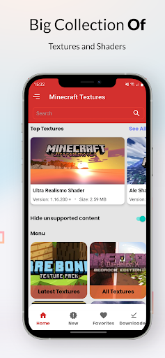 In the Texture for Minecraft PE you will find popular and free textures for Minecraft PE. All textures for Minecraft in the application are completely free. We have selected the best shaders and texture packs, a huge number of combinations. To download textures for Minecraft PE you need to click on the desired texture and click the download button. After that, the texture will be loaded into your texture packs application for Minecraft directly into the game.