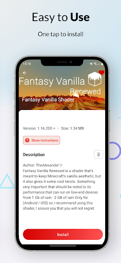 Resource Pack for MCPE is a toolbox which helps you install Minecraft resources packs easily and automatically, without the hard jobs like searching the web, save resources files and transfer files manually. Just browse what resource pack you like, then press Install, all done. Bring more marvelous and delightful to your bedrock experience! A whole new level with realistic texture packs for Minecraft PE, covert clouds, sun and moon, xali's bushy leaves, stars, water, and tree depending on the shaders you choose.