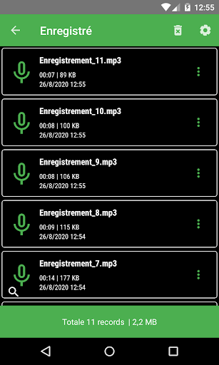 • Synchroniser pour ajouter vos fichiers d’enregistrement existants à l’application.