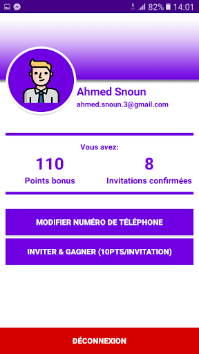 - Invitation d’amis via les réseaux sociaux, email et SMS afin de gagner des points bonus.